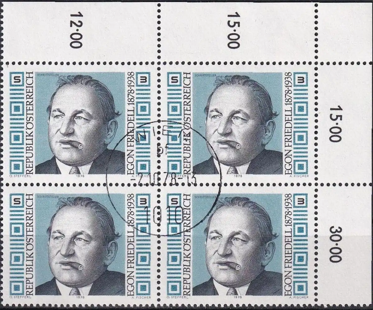 ÖSTERREICH 1978 Mi-Nr. 1566 Eckrand-Viererblock o used - aus Abo