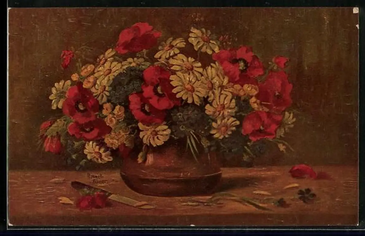 Ölgemälde-Imitations-AK Degi Nr. 1021: Bunter Blumenstrauss in einer Vase