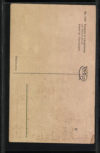 Personenbezogene Daten auf der Rückseite der Karte wurden durch blauen Textmarker unkenntlich gemacht. Die blauen Stellen sind auf die Vorderseite durchgeweicht und wirken sich negativ auf das Postkartenfoto aus