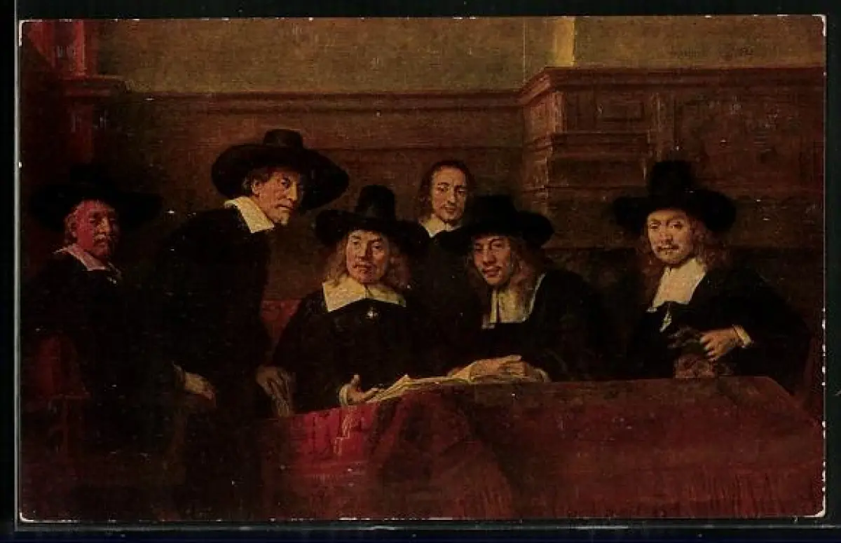 Ölgemälde-Imitations-AK Degi Nr. 1096: Gruppe Männer in dunkler Kleidung