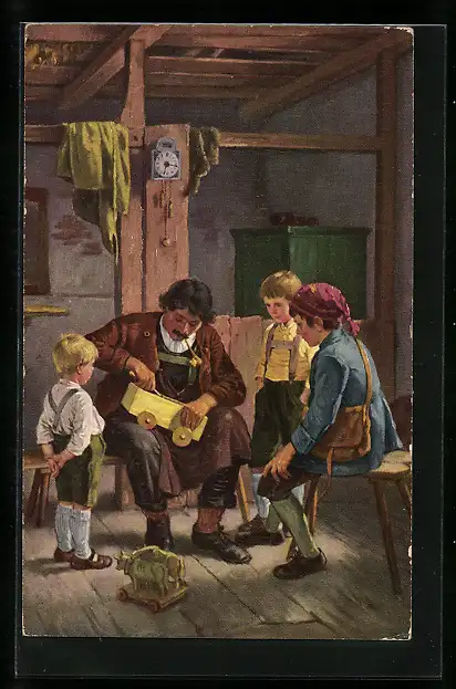 Ölgemälde-Imitations-AK Degi Nr. 1161: Das neue Fuhrwerk von F. von Defregger