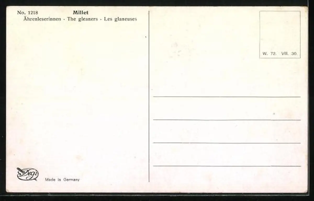 Ölgemälde-Imitations-AK Degi Nr. 1218: Aehrenleserinnen, Damen auf dem Feld, Millet