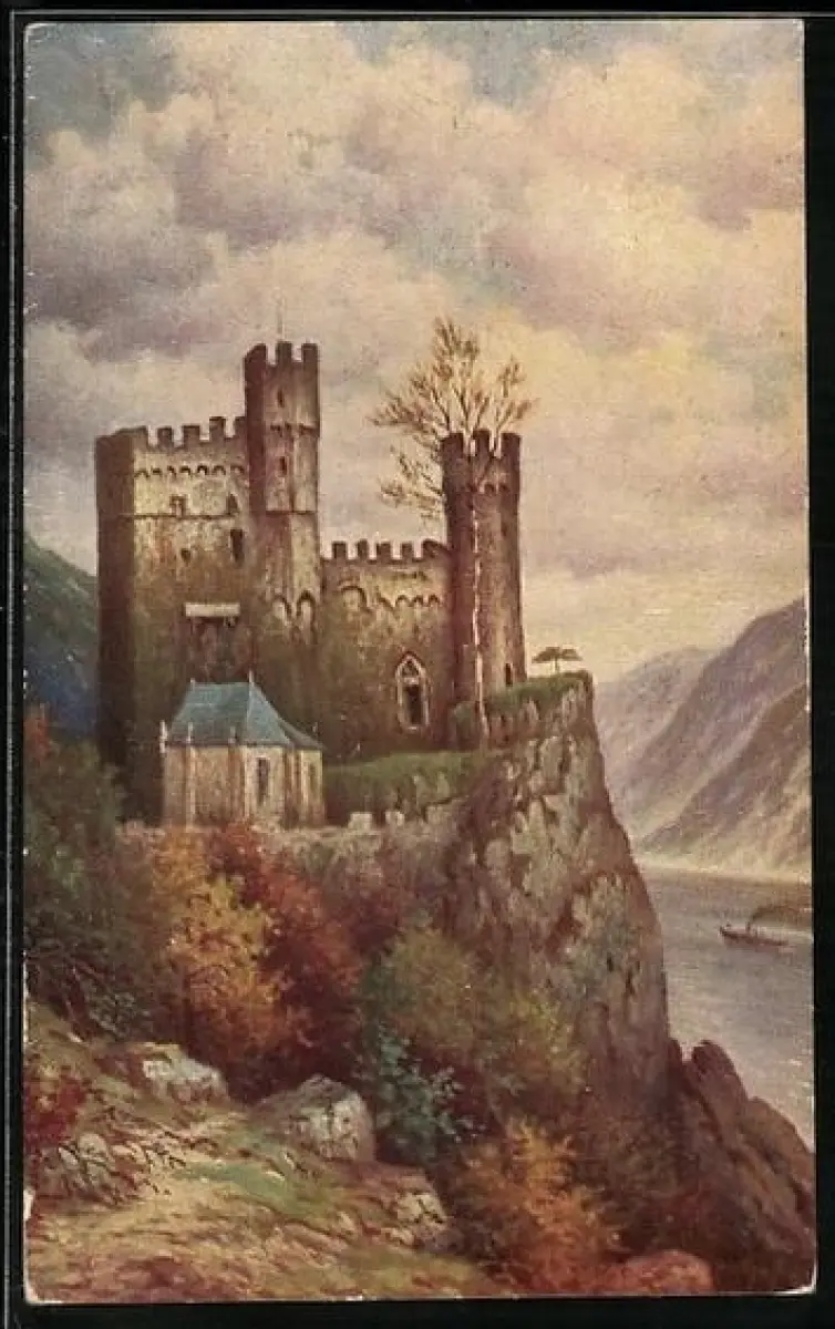 Ölgemälde-Imitations-AK Degi Nr. 1261: Schloss Rheinstein und der Rhein