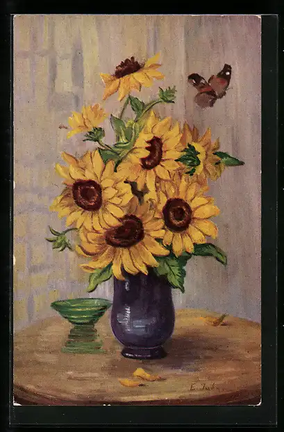 Ölgemälde-Imitations-AK Degi Nr. 1434: Sonnenrosen von E. Jahn