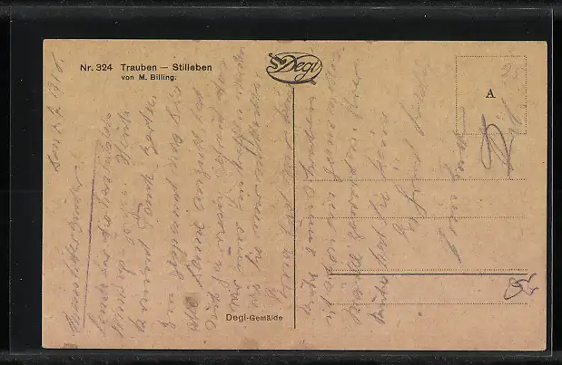 Ölgemälde-Imitations-AK Degi Nr. 324: Stilleben mit Weintrauben