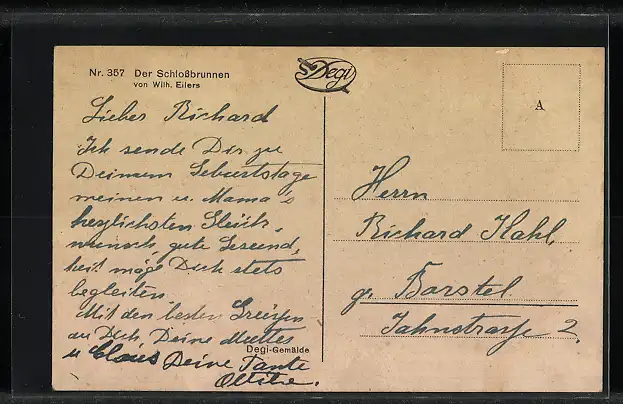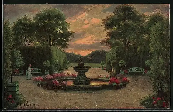 Ölgemälde-Imitations-AK Degi Nr. 357: Schlossbrunnen im Abendlicht