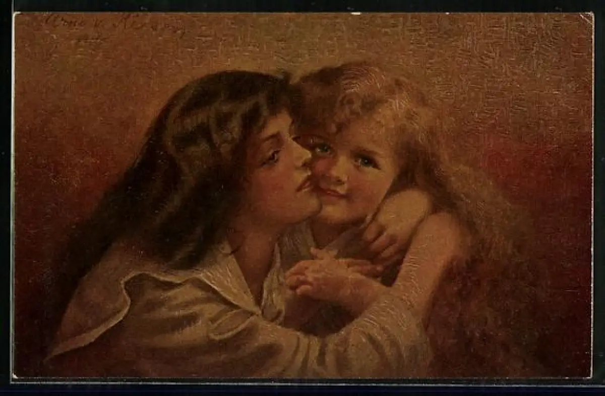 Ölgemälde-Imitations-AK Degi Nr. 514: Geschwister umarmen sich