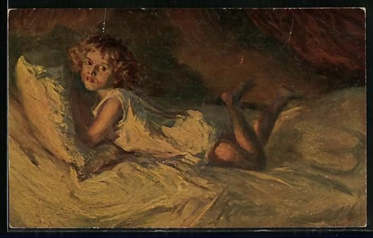 Ölgemälde-Imitations-AK Degi Nr. 571: Mädchen liegt auf einem Bett