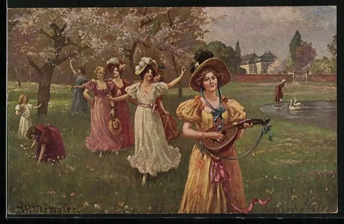 Ölgemälde-Imitations-AK Erpaco-Kunstverlag Nr. 17: Mädchen im Frühling