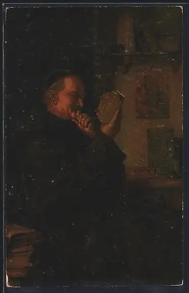 Ölgemälde-Imitations-AK Imita / A.S.-M. Leipzig Nr. 280: Mönch bei der Lektüre