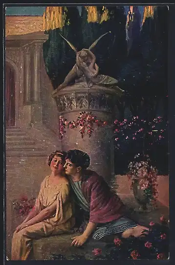 Ölgemälde-Imitations-AK Imita / A.S.-M. Leipzig Nr. 561: Römisches Paar an einer Säule