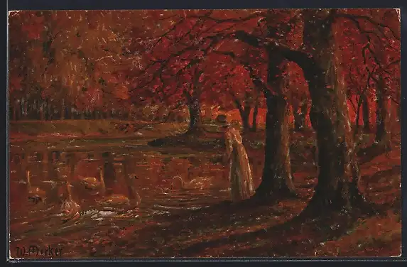 Ölgemälde-Imitations-AK Imita / A.S.-M. Leipzig Nr. 619: Frau am Schwanenteich