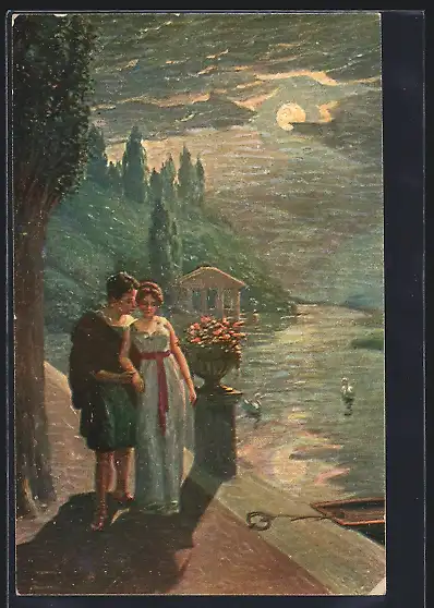 Ölgemälde-Imitations-AK Liebespaar am Wasser