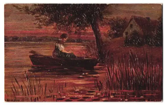Ölgemälde-Imitations-AK Wenn der Abend kommt, H. Hermanns