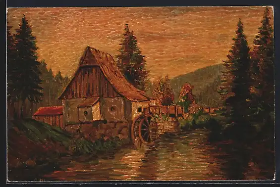 Ölgemälde-Imitations-AK Winand Elsmann-Verlag Nr. 1445: Mühle am Bach