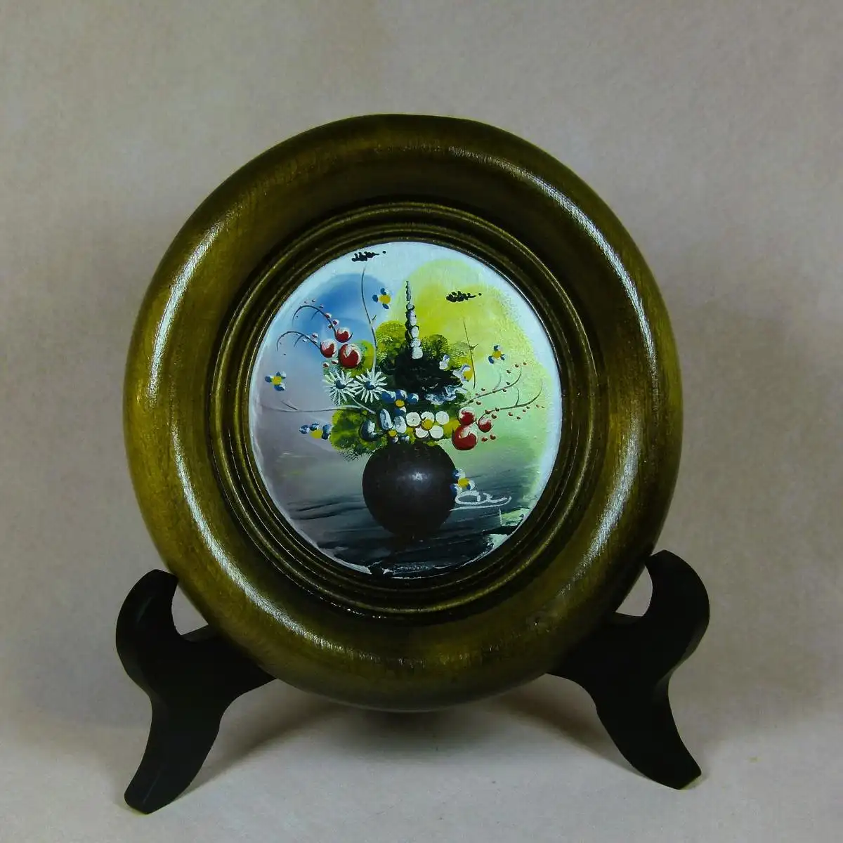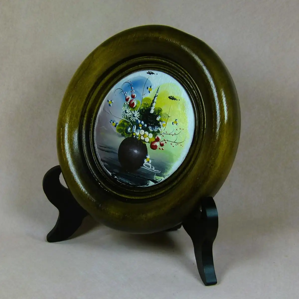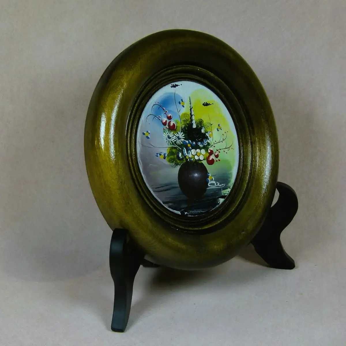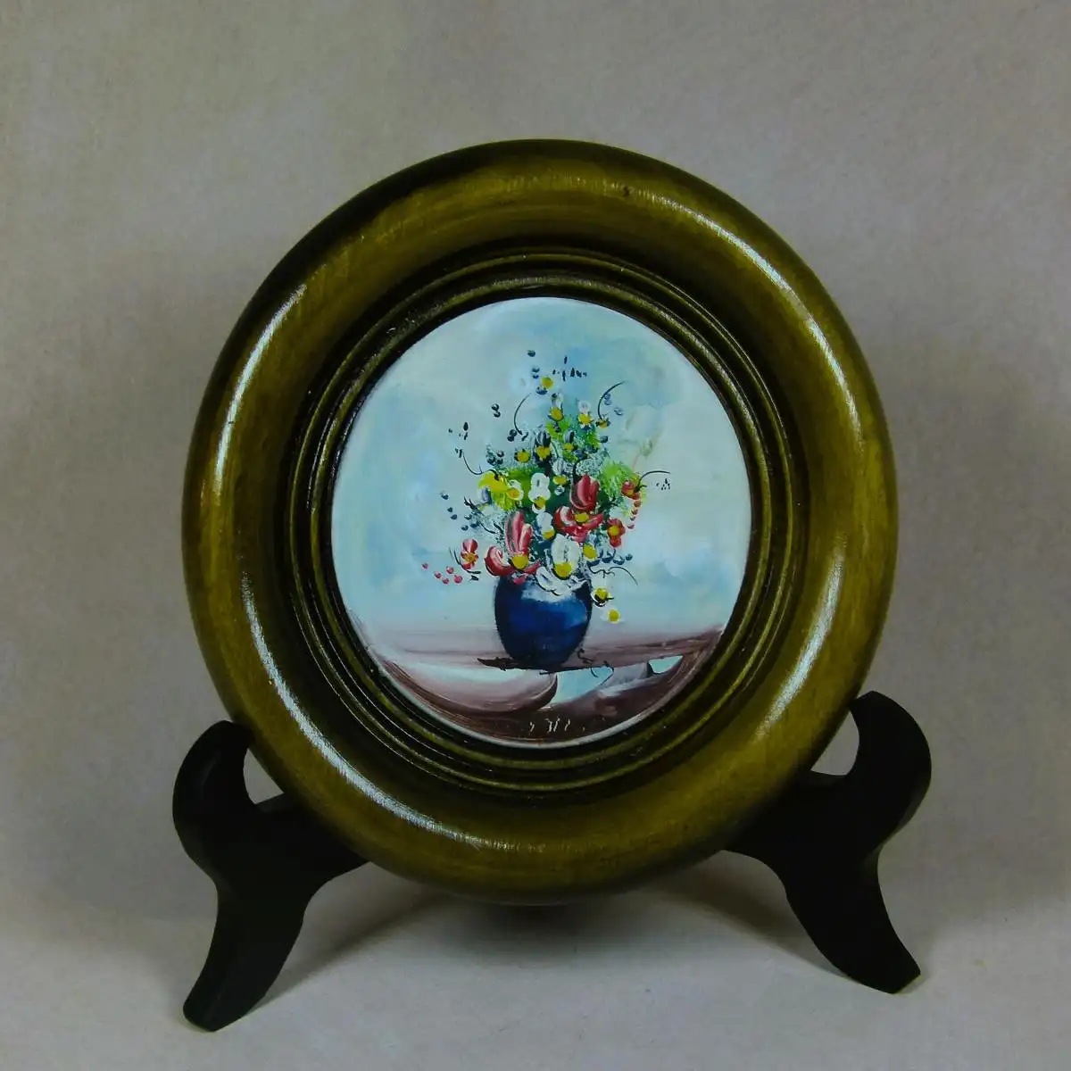 Ölgemälde,Blumenarrangements,Vintage-Kunst,ovaler, Holzrahmen,Sammlerstück,floraler, Dekor,dekorative, Kunst