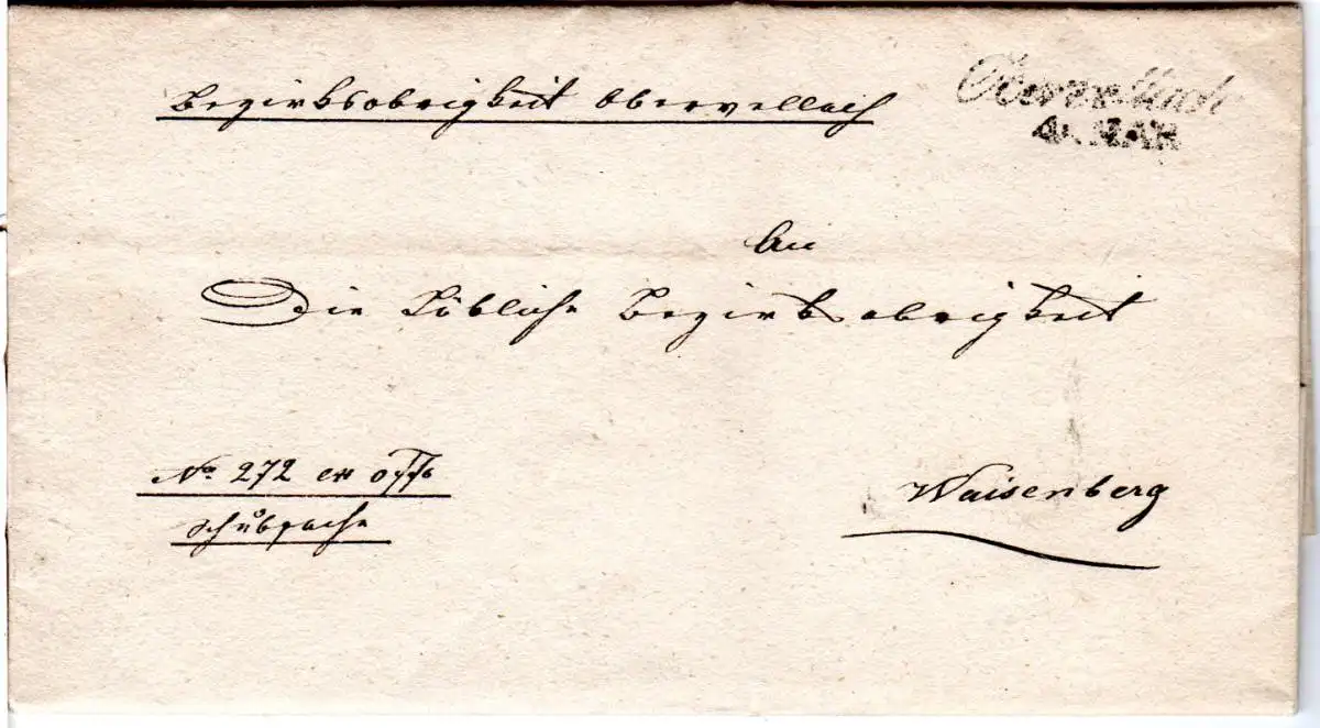 Österreich 1842, Schreibschrift-L2 Obervillach auf Brief n. Weisenberg