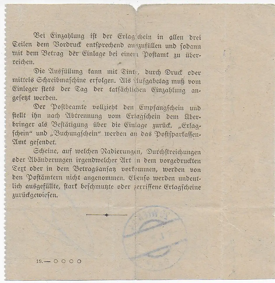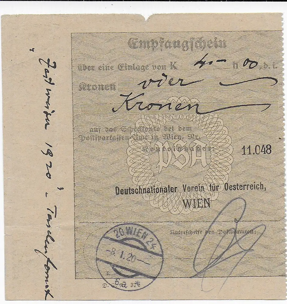 Österreich 1920: Empfangsschein PSA, Deutschnationaler Verein, Wien