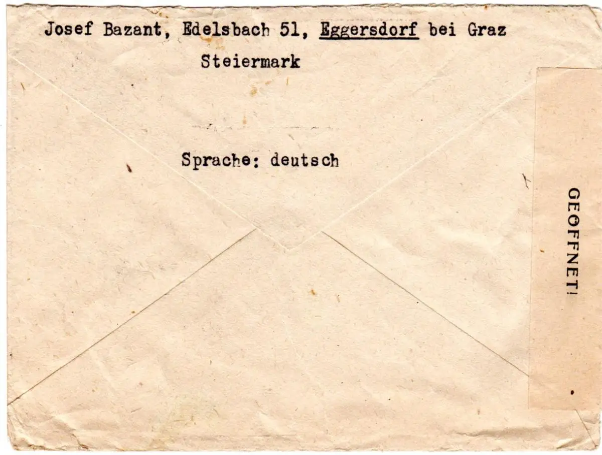 Österreich 1946, 4 Marken auf Zensur Brief v. Eggersdorf b. Graz i.d. Schweiz