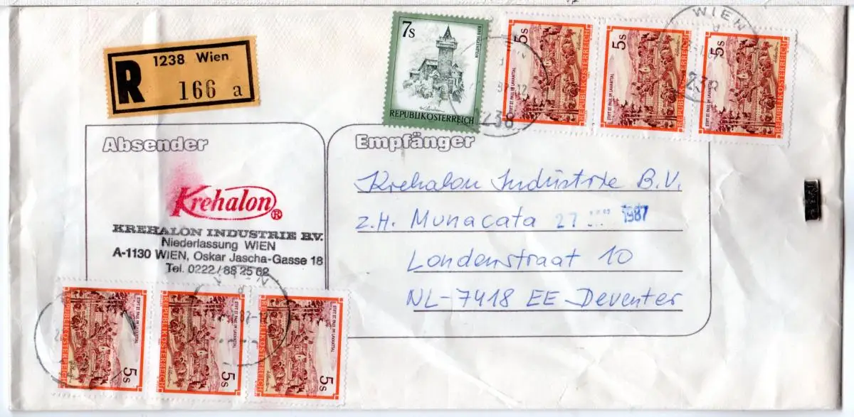 Österreich 1987,7+6x5 S. auf eingeschriebener Muster Sendung v. Wien i.d. NL.