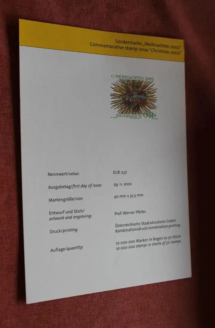 Österreich 2002; Offizielles Ankündigungsblatt der Österreichischen Post: Weihnachten 2002