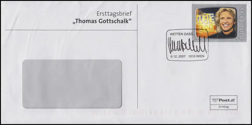 Österreich: 2695 Thomas Gottschalk - Wetten dass ...? FDC ESSt Wien 8.12.2007