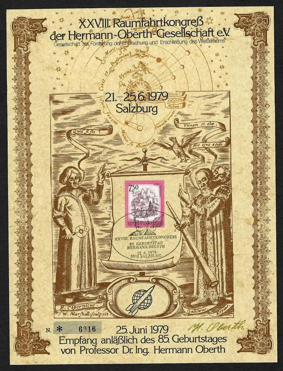 Österreich: 28. Raumfahrtkongress, Hermann Oberth Gedenkblatt mit Unterschrift