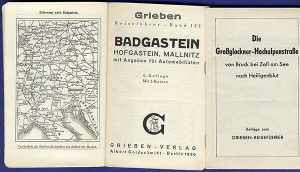 Kurort Badgastein Hofgastein Tauernbahn und Mallnitz Grieben Reiseführer Band 153 in der 4. Auflage von 1930