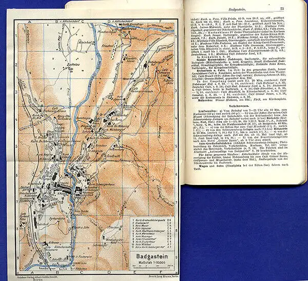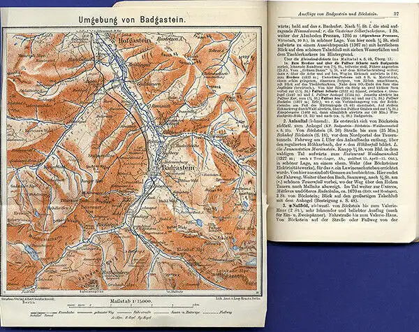 mit GESAMT 80 Seiten einer Beilage und 5 Karten einem Ortsregister Reisezeiten Pass und Zollkontrolle Reisewege nach Badgastein und Hofgastein die Streckenführung der Tauernbahn Bad Gastein der Ort Kuranlagen und die Umgebung Ausflüge Wanderungen und Bergtouren Fahrten mit dem Automobil Hofgastein und seine Umgebung Mallnitz Aukogel und Heiligenblut Bergtouren und Hütten Ski und Wintersportmöglichkeiten außerdem Anzeigen und Inserate.