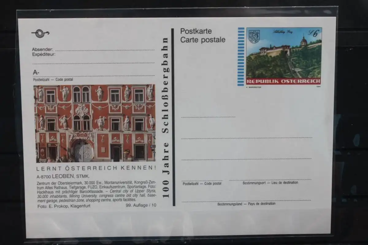 Aboware, Top-Erhaltung. Auflage nur 10.000. Aus der Sonder-Serie: 100 Jahre Schloßbergbahn ! Karte in PVC - und weichmacherfreier transparenter Schutzhülle.