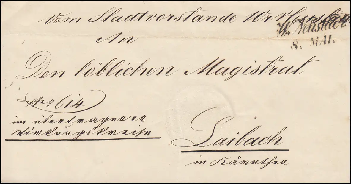 Österreich Briefhülle Zweizeiler W(iener) Neustadt 8.5.1858 nach Laibach 9.2.