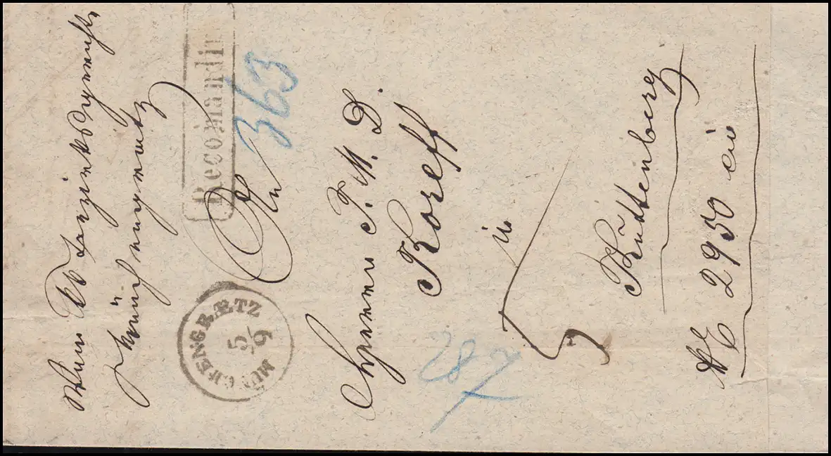 Kastenstempel Recomandiert, Ankunfts-Einkreis-O KUTTENBERG / KUTNA HORA 7.9.