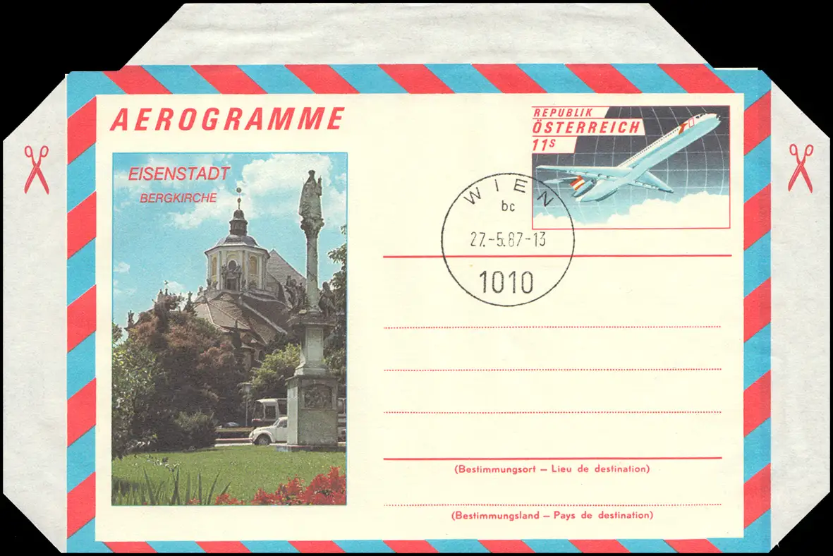 Luftpost-Faltbrief / Luftpostfaltbrief / Aerogramme, Ersttagstempel 1010 WIEN 27.5.1987