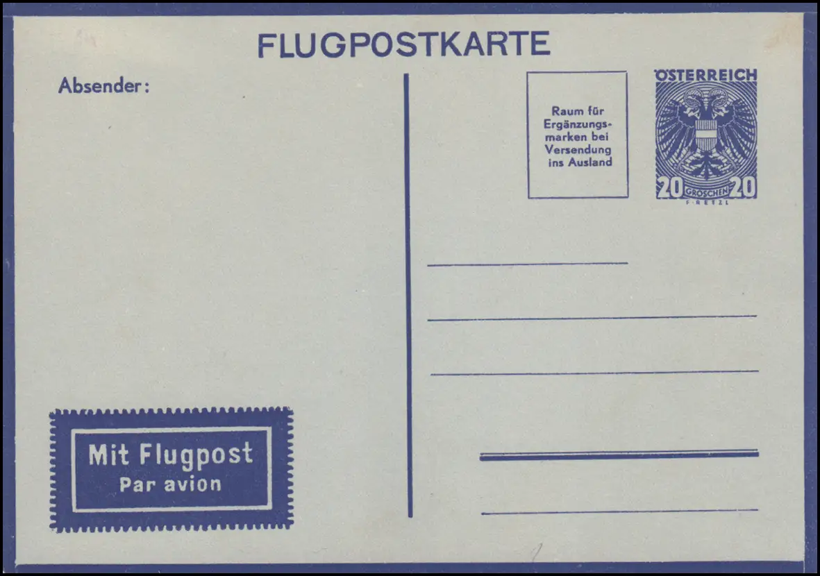 Österreich Luftpost-Postkarte LP 4 Wappen 20 G., ungebraucht, leicht fleckig
