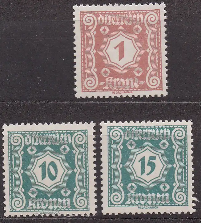 Österreich, Portomarken Mi-Nr. 103, 112 + 113 **, Ziffernzeichnung