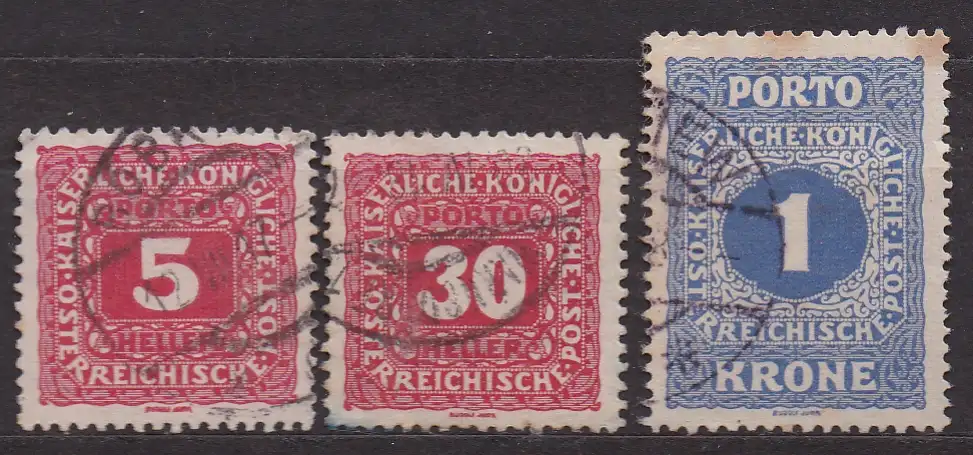 Österreich, Portomarken Mi-Nr. 47, 52 + 55 A gest., Wertziffer
