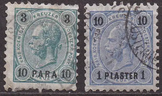 Österreich - Post in der Levante, Mi-Nr. 21 + 23 gest., Kaiser Franz Joseph