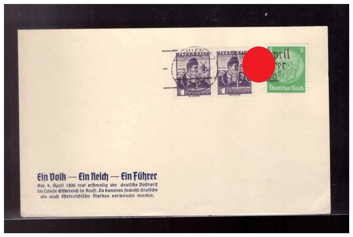 Dt- Reich (023036) Postkarte mit Mischfrankatur deutsch und Österreich vom ersten Gültigkeit der RM Postwertzeichen,