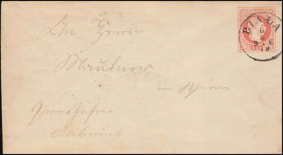 Österreich Umschlag 60I Kaiser Franz Joseph 5 Kr. BIAWIA 6.6.1879 nach WIEN 7.6.