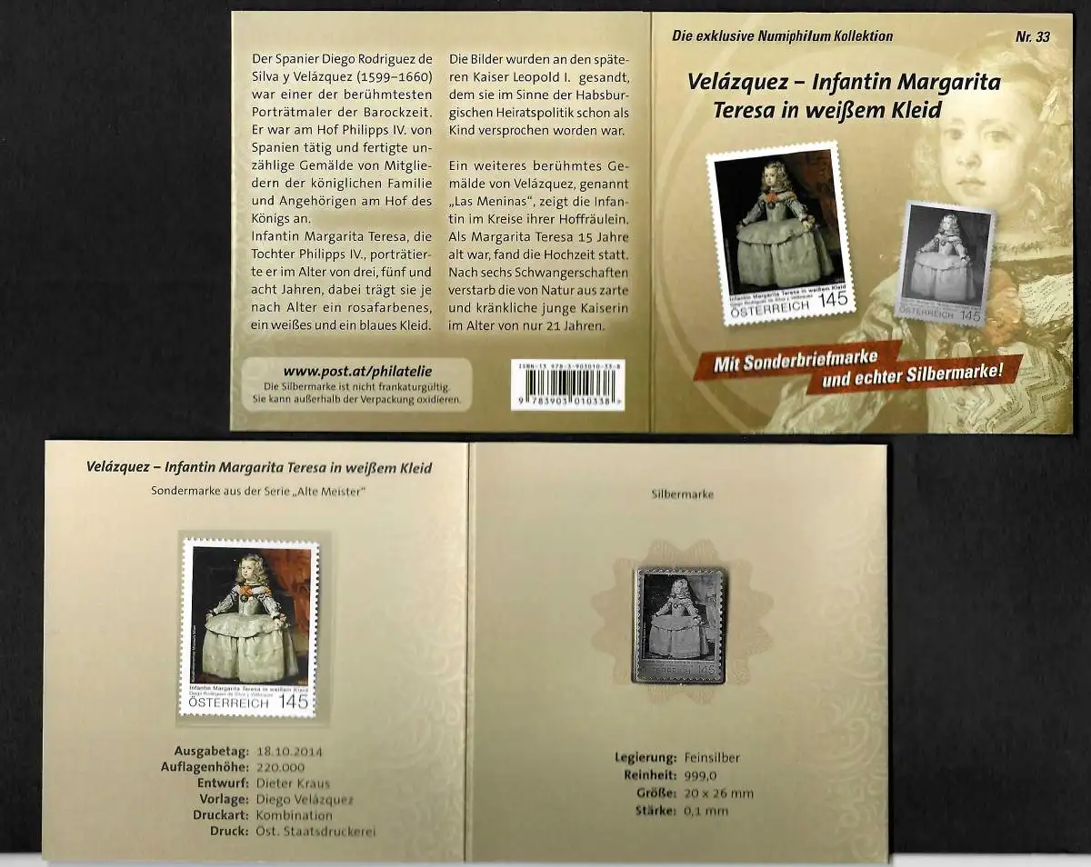 Österreich Velázquez-Infantin Margarita Teresa mit Silber Briefmarke, postfrisch