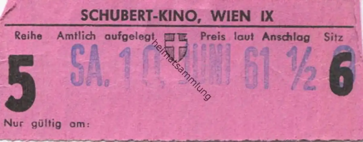 Österreich - Wien - Schubert-Kino Wien IX - Kinokarte 1961