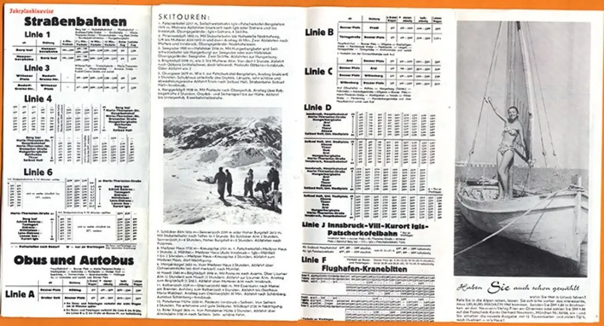 photographischen und druckgraphischen Abbildungen Lage und Beschreibung der Stadt einem Stadtplan außerdem Fahrplan der Bergbahnen Hotel und Gaststättenwerbung Sehenswürdigkeiten und Skitouren dazu auhc Werbung von Coca Cola und Esso