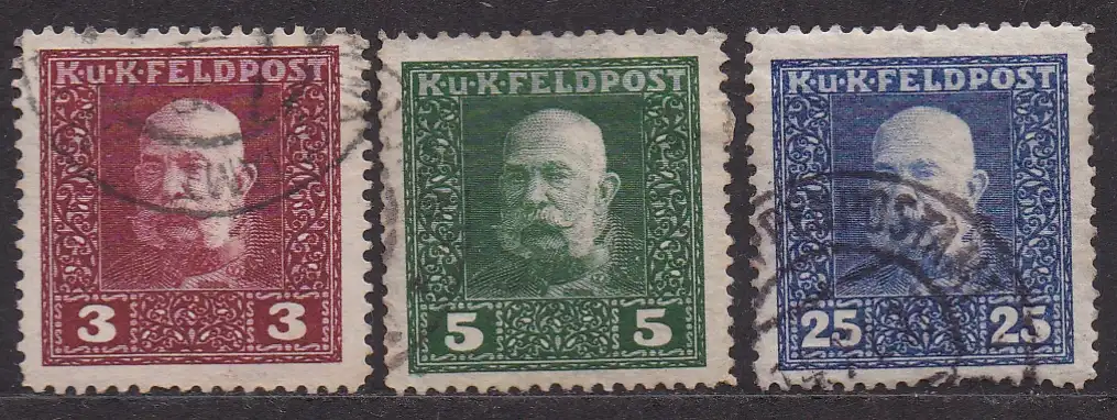 Österreich - österr.-ung. Feldpost, Mi-Nr. 24, 25 A + 33 gest., Kaiser Franz Joseph