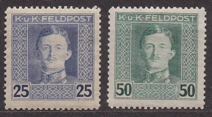 Österreich - österr.-ung. Feldpost, Mi-Nr. 62 + 65 A *, Kaiser Karl I.