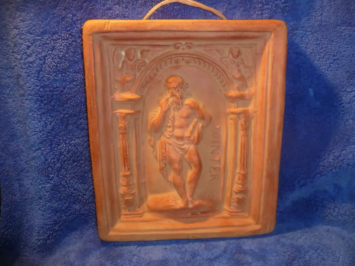 Ofenkachel mit griechischem Götter Dekor " Winter" hier wohl Asklepios gemarkt Akropolis Masse: 26 x 22 x 5cm