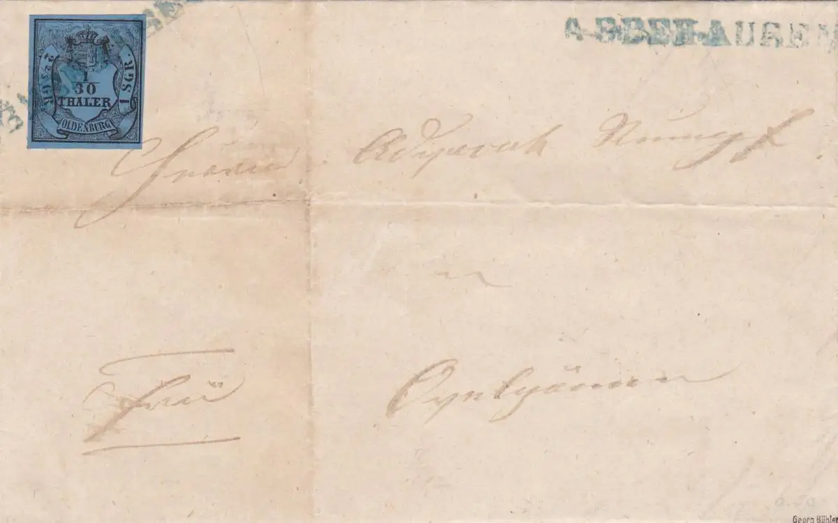 Oldenburg Brief MiNr. 2IIIm Type III, Abbehausen nach Ovelgönne, signiert