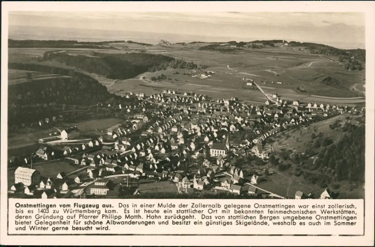 Onstmettingen-Albstadt Luftbild mit Chronik-Beschreibung des Ortes 1940
