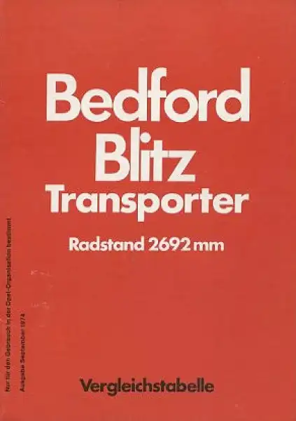 Opel Bedford Blitz Radstand 2692 mm Vergleichstabelle 9.1974