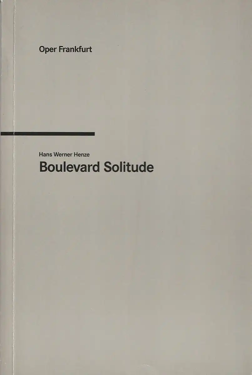 Oper Frankfurt, Martin Steinhoff, Norbert Abels: Programmheft Hans Werner Henze BOULEVARD SOLITUDE 8. März 1998 Spielzeit 1997 / 98.