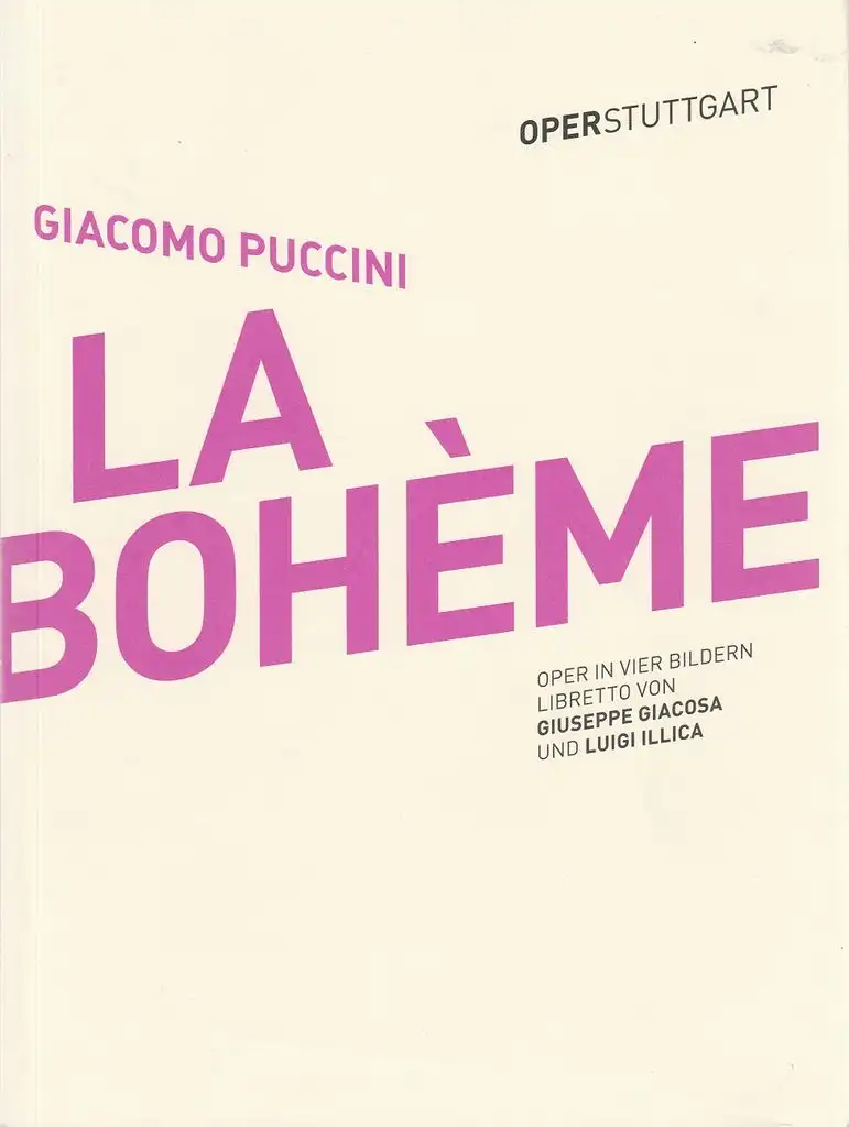 Szenen aus Henri Murglers Das Leben der Boheme in vier Bildern. Musikalische Leitung: Simon Hewett. Regie: Andrea Moses. Bühne: Stefan Strumbel. Kostüme: Anna Eiermann. Mitwirkende: Atalla Ayan, Andre Morsch, Bogdan Baciu, Adam Palka, Mark Munkittrick, Pumeza Matshikiza, u.a. - Theaterprogramm, Opernprogramm, Ballettprogramm, Musicalprogramm, Konzertprogramm, Theatermemorabilia, Programmhefte Sammlung, deutsche Theatergeschichte.